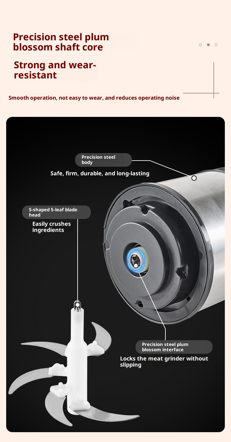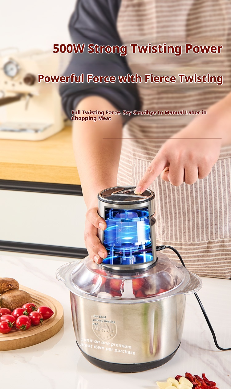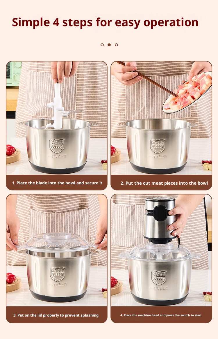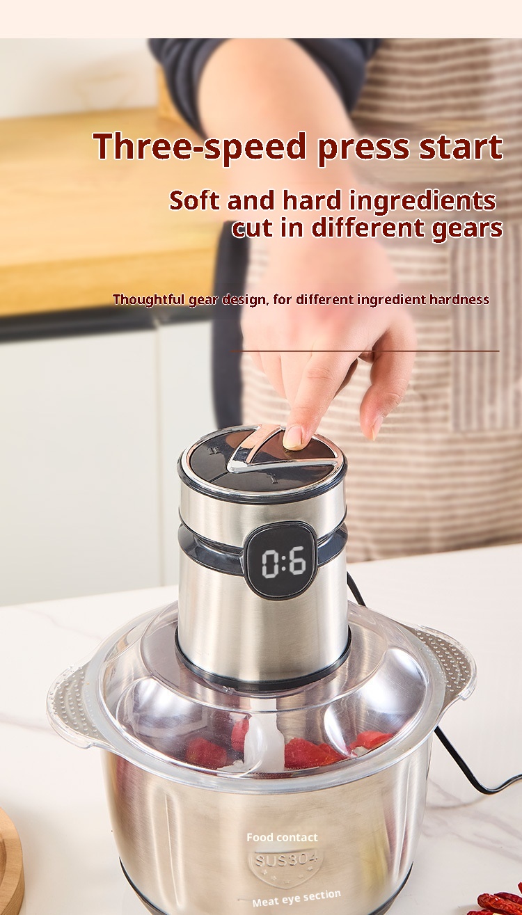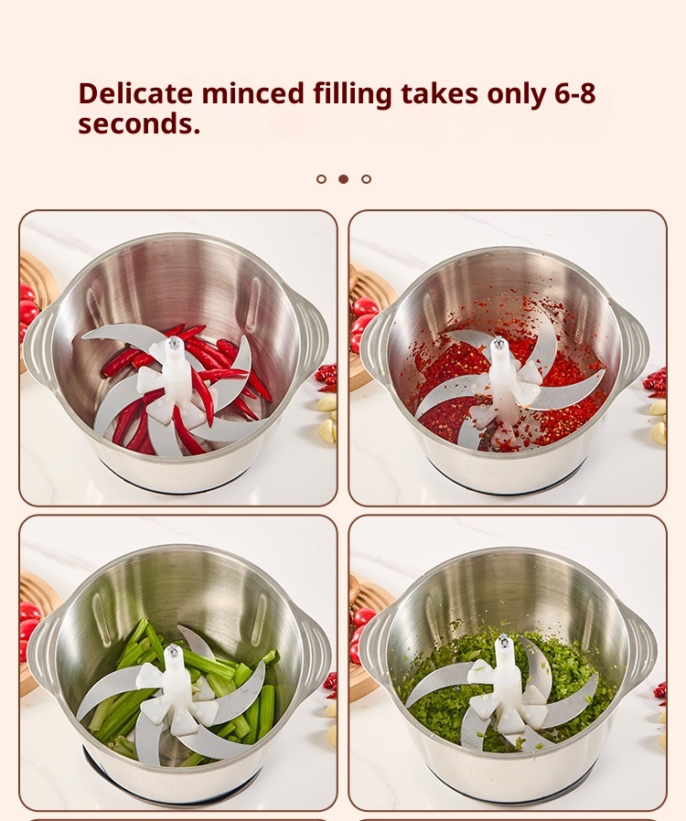 Function: baby food supplement, adjustable speed, chopping and slicing, meat sausage, egg mixture, quick peeling garlic, multi-bowl easy to store